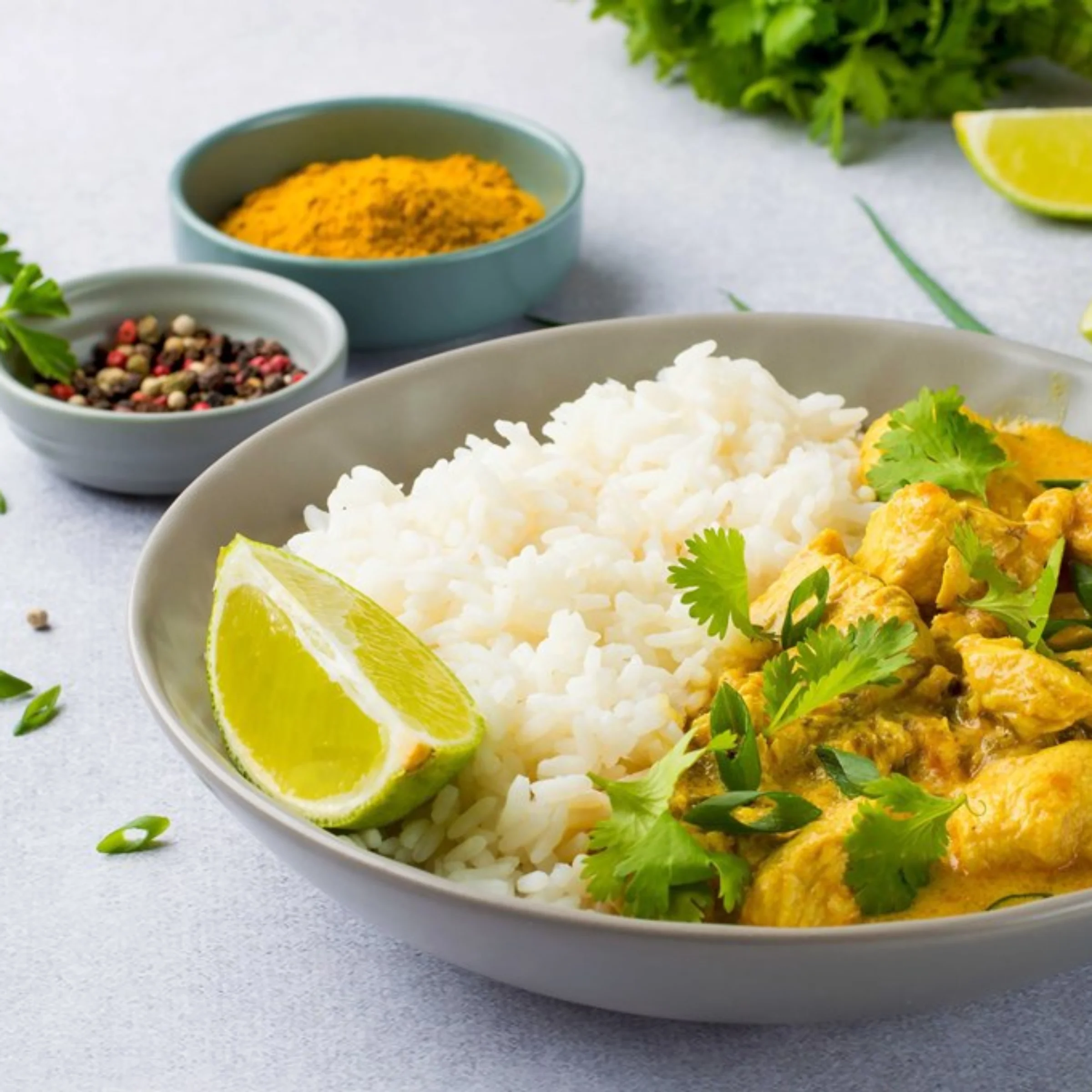 - Für die Würzmischung das Koriandergrün waschen, trocken schütteln und samt feinen Stängeln hacken. Knoblauch schälen, hacken. 1 EL Ghee in einem Topf schmelzen, den Knoblauch darin ca. 1 Min. andünsten. Vom Herd nehmen. Den Koriander unterrühren.