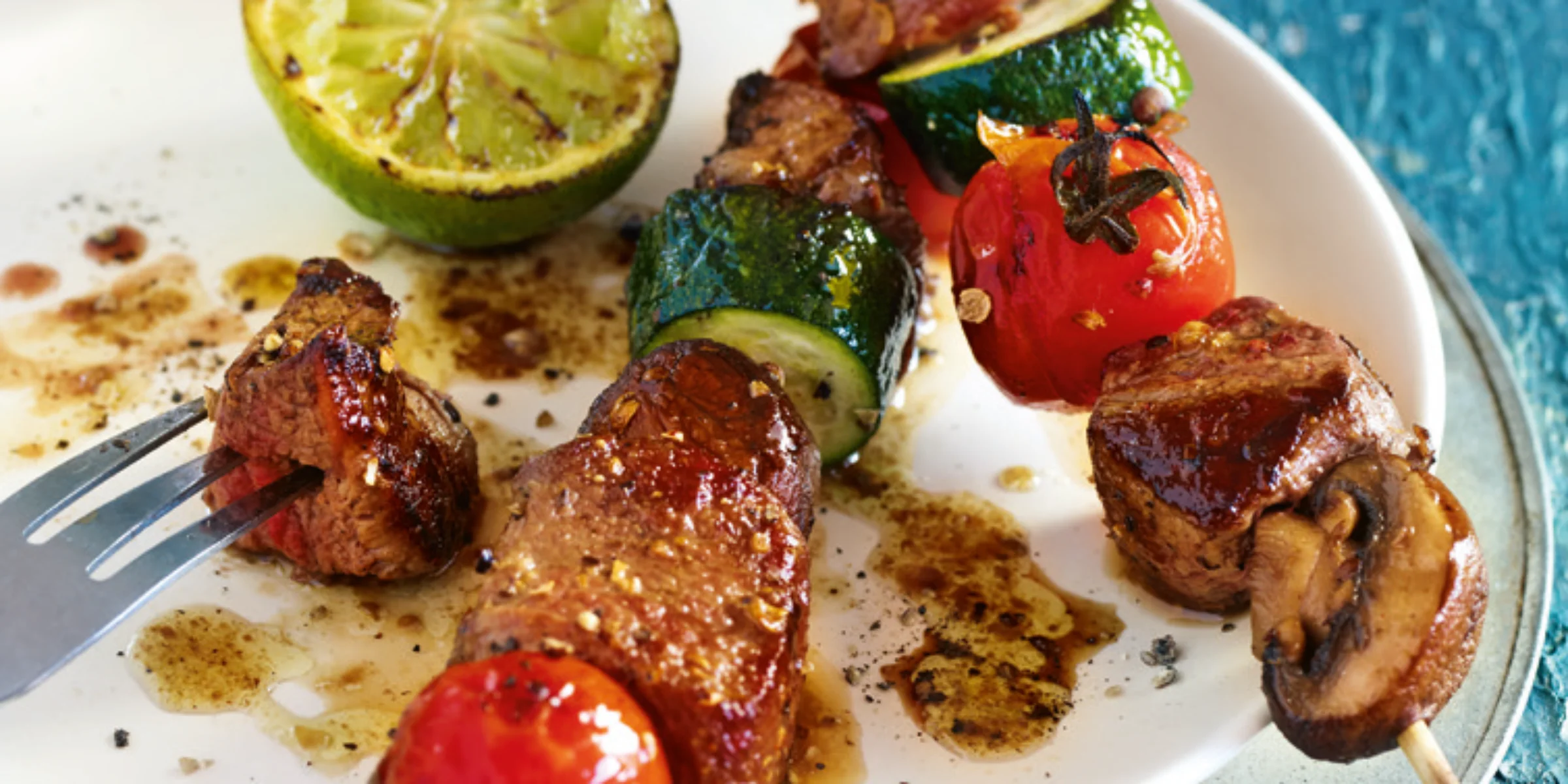 Rezeptidee: Schaschlik mit Fleisch und GemüseHierfür benötigen Sie folgende Zutaten: