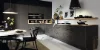 Moderne Küche mit dunklen Schränken, Esstisch und Dekorationen, gestaltet von Nolte Küchen.