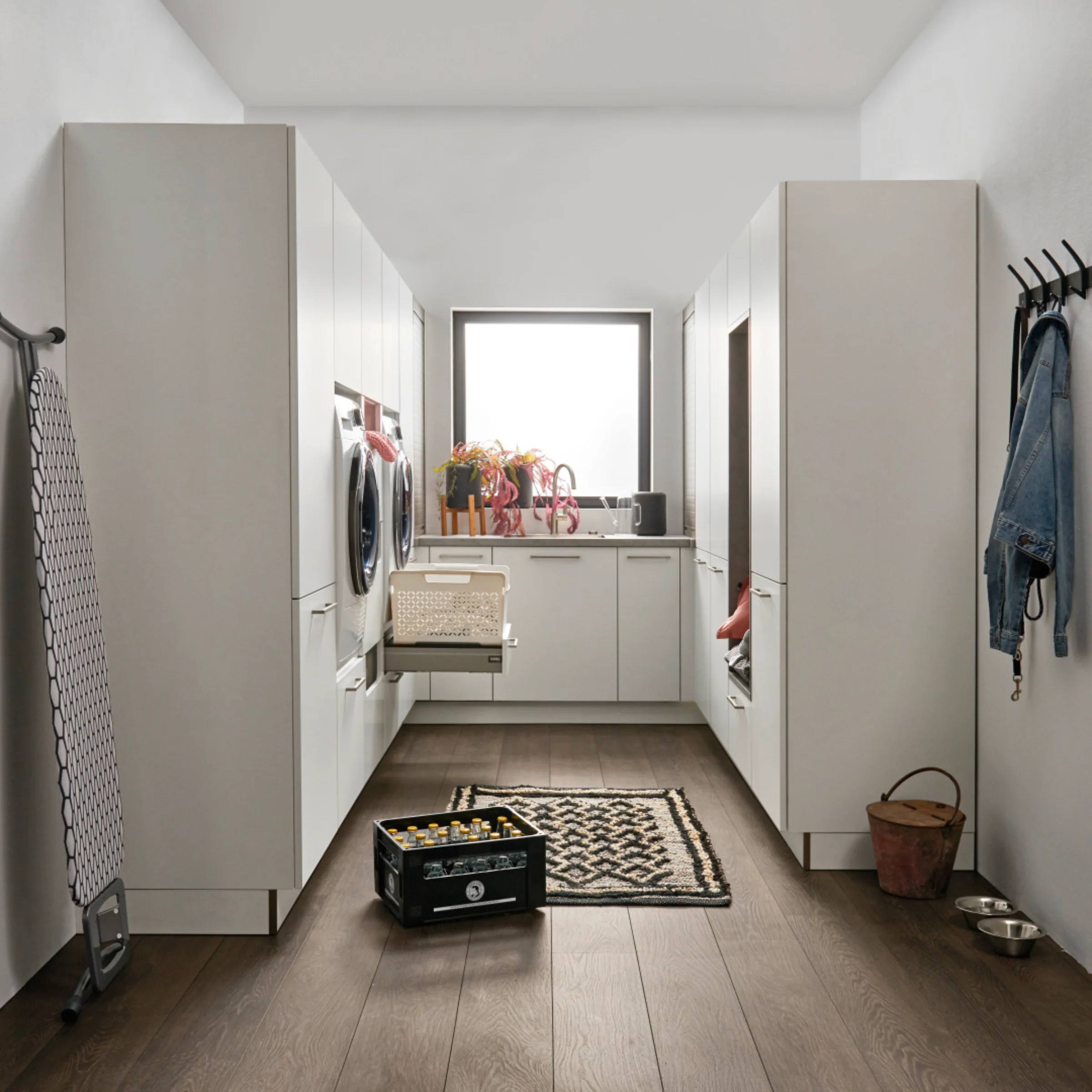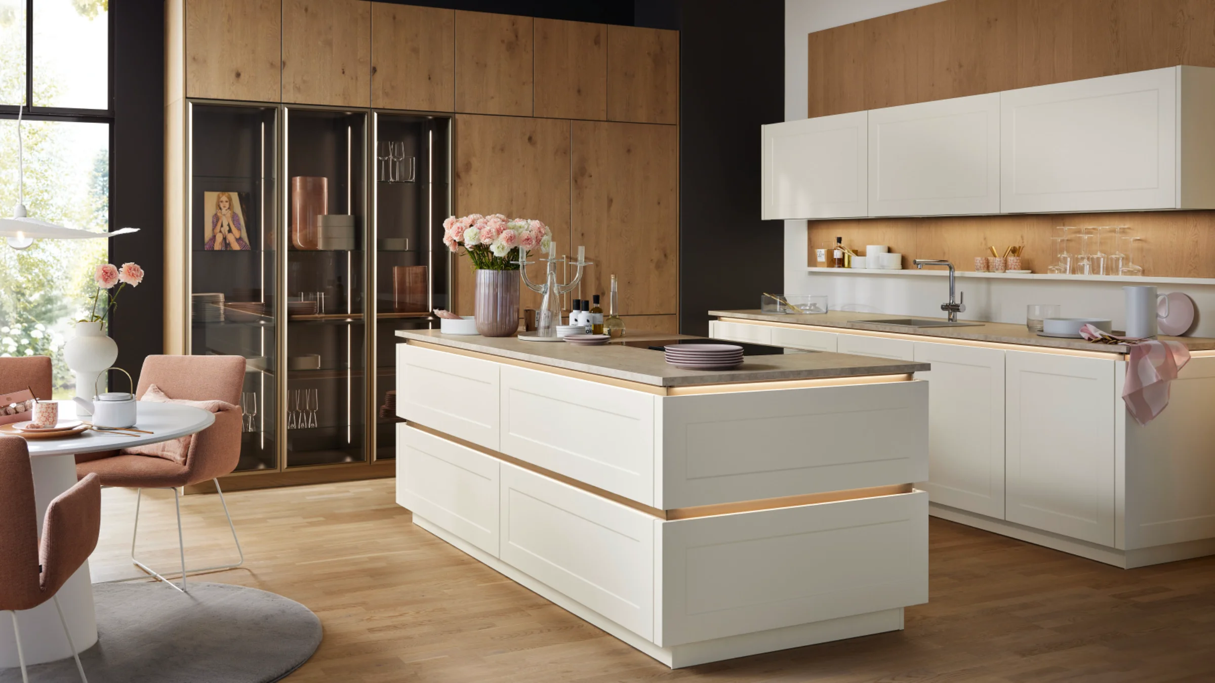 Das Besondere an dieser Küche ist die Kombination von zwei verschiedenen Frontprogrammen aus unserem Mattlack-Konzept. Hier trifft Moderne auf zeitlose Eleganz. Während viele Details der FRAME LACK an den Landhausstil erinnern, setzt SOFT LACK mit moderner Gradlinigkeit einen harmonischen Gegenpol. Der Clou: Sie können diese Küche in 17 weiteren Farben gestalten – ganz nach Ihrem persönlichen Geschmack.